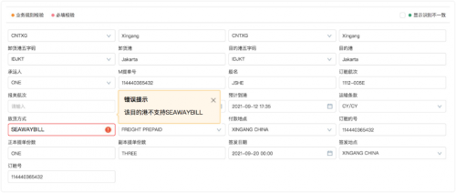智能校验:自动校验订舱/提单要求、比对数据一致性