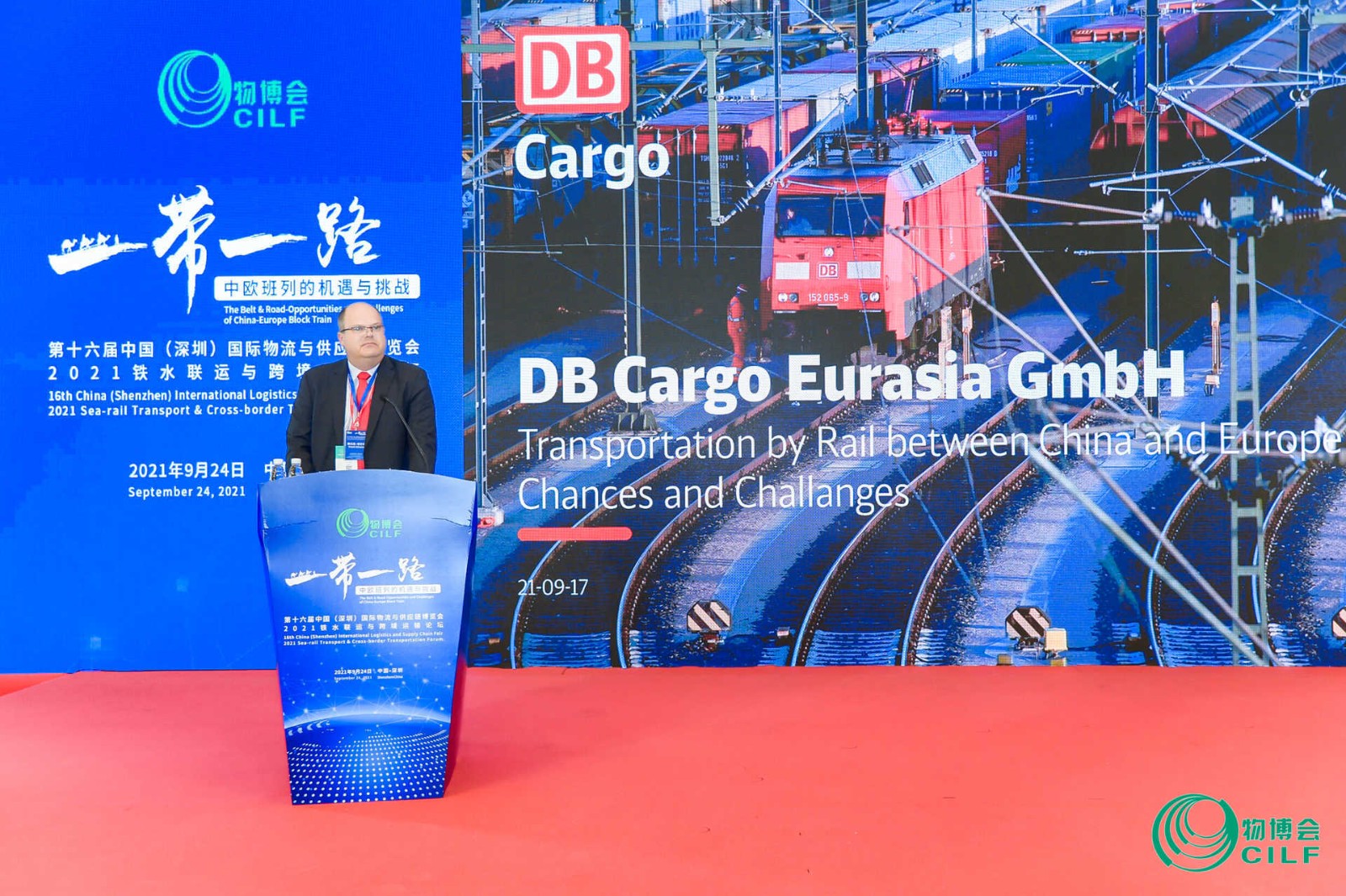 “中国和欧洲之间这种跨境的运输实际上也验证了深圳的发展,那就是在短期内取得了非常瞩目的成就。”德铁货运中国公司总经理弗兰克·修尔彩对深圳的腾飞发展表示了肯定,并围绕“中欧之间铁路运输的机遇和挑战”主题介绍了德铁货运中国公司过去的历程,以及目前在进行铁水联运和跨境运输方面的机会与挑战。