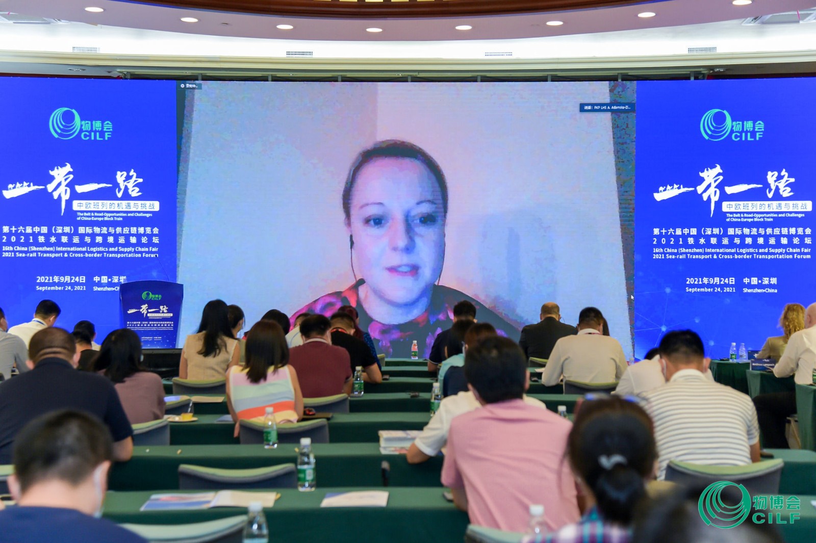波兰国家铁路集团宽轨公司多式联运总监亚历山德拉·亚当斯卡-辛特克,通过*与现场观众介绍了“一带一路”的物流解决方案以及他们所提供的沿线全链服务。
