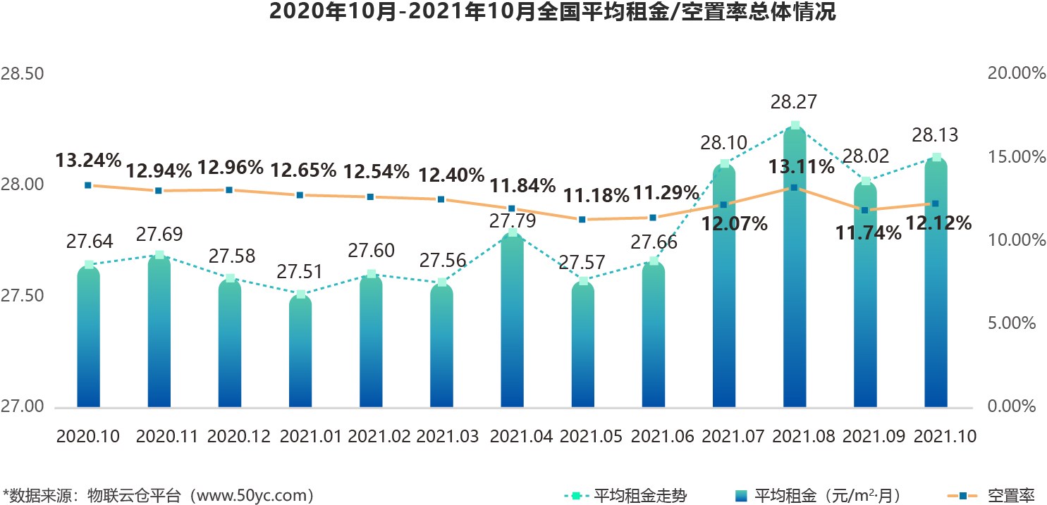 市场总结:10月全国通用仓储市场租赁需求有所减少;全国通用仓库新增供应有所下降;全国32个城市平均租金、空置率维持平稳。