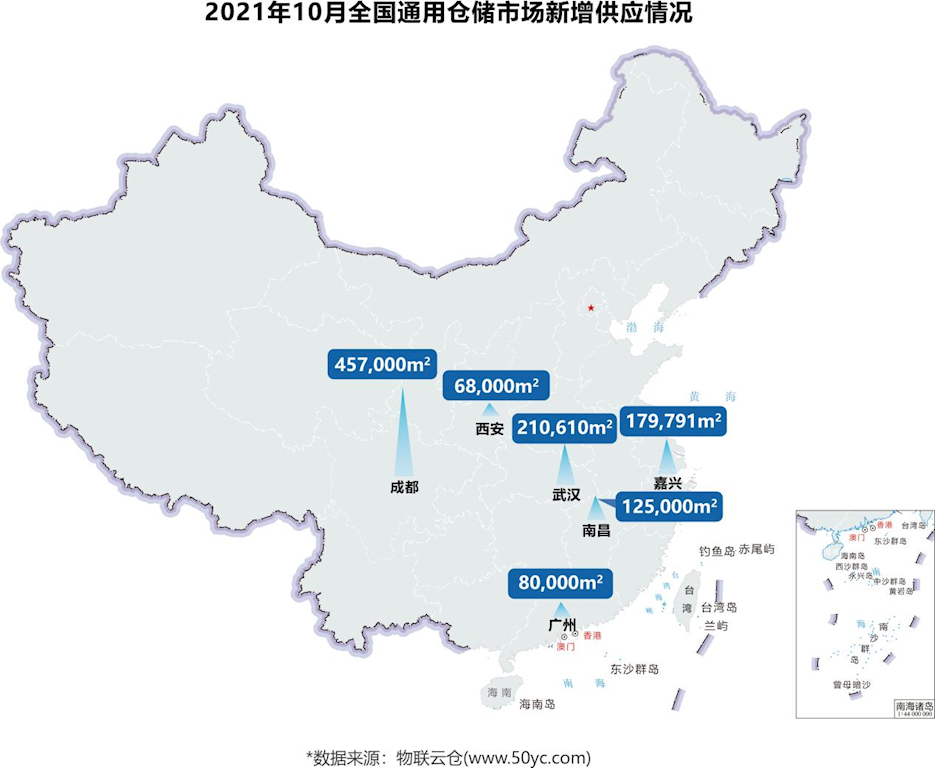 全国32个城市共收录建成项目10起,约112.04万㎡,相较9月,同比下降28.39%。从区域分布看,新建仓库主要集中在西部地区,东部和中部地区相对较少。从城市分布看,新增供应TOP3城市分别为成都(45.70万㎡)、武汉(21.06万㎡)、嘉兴(17.98万㎡)。