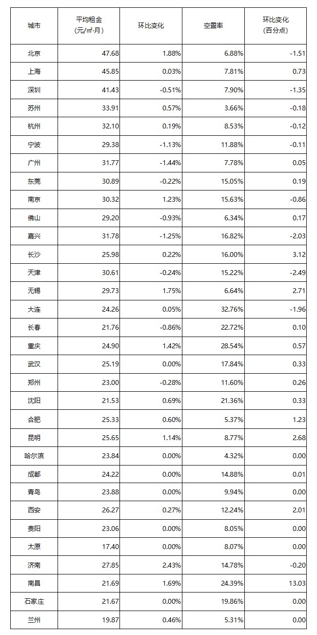 租金、空置率:租金涨幅为0.39%,空置率上升0.38个百分点