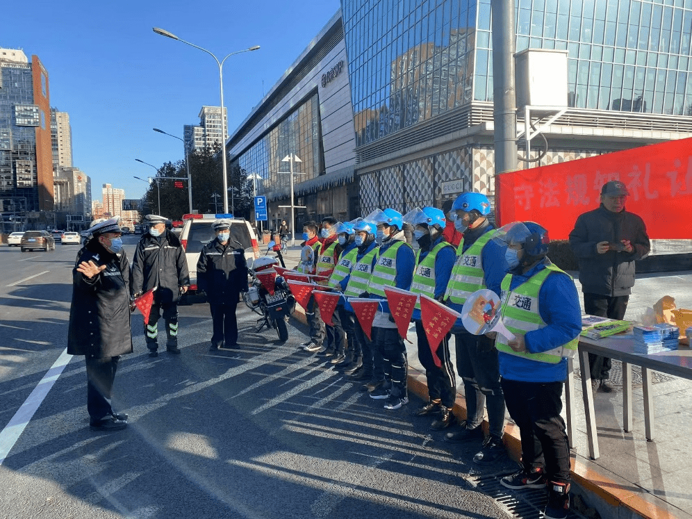 北京,交警给达达快送骑士培训交通文明知识