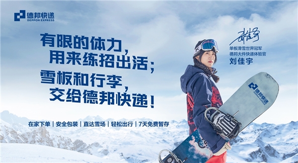 与此同时,作为德邦大件快递体验官,刘佳宇携手德邦快递,共同助力中国冰雪运动的发展。【雪具达】是德邦快递进军雪具寄递市场,针对雪圈客群推出的雪具、大件行李寄递的专业服务,具备「安全包装,雪场直达」两大优势。目前,德邦快递已完成包括崇礼、新疆、东北等地的17家全国性雪场运输线路的搭建,为冰雪运动爱好者、专业冰雪运动员等群体提供高品质的雪具寄递体验。
