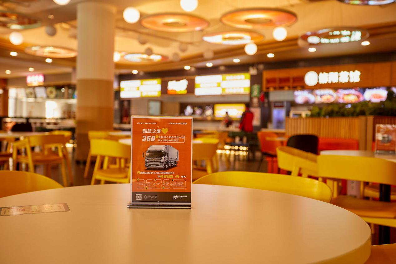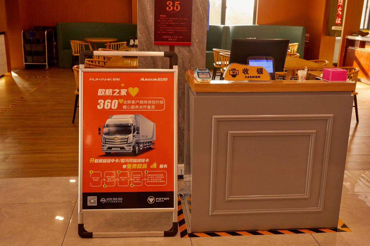 出示驾驶证,下载福田APP就可以免费就餐。利用用户车辆空闲时间,为车辆提供现场维修服务,帮助用户节省时间,降低运营成本,实现价值提升。