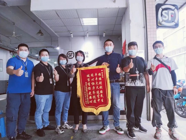 4月份深圳疫情清零,整个城市恢复活力,顺丰同城深圳宝安区宝购驻店团队的骑士们,在疫情封控的困难下,骑士们选择昼夜留宿在外,积极协调各种资源确保了疫情期间到家订单派送,顺丰同城客户特赠锦旗以示感谢。