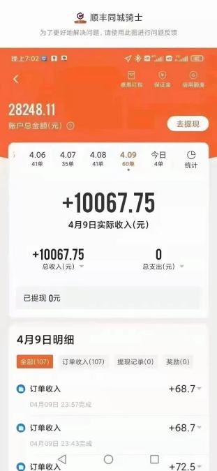 近日,一张顺丰同城骑士4月9日单日收入过万的截图在网上广为流传,引发舆论关注。