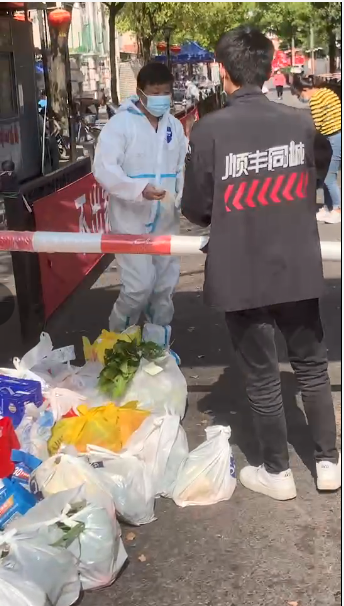 与此同时,因疫情管控封闭在小区中的顺丰同城员工,也在尽自己的努力为上海的疫情防控贡献力量,解决药物等物资供应“最后一百米”难题。