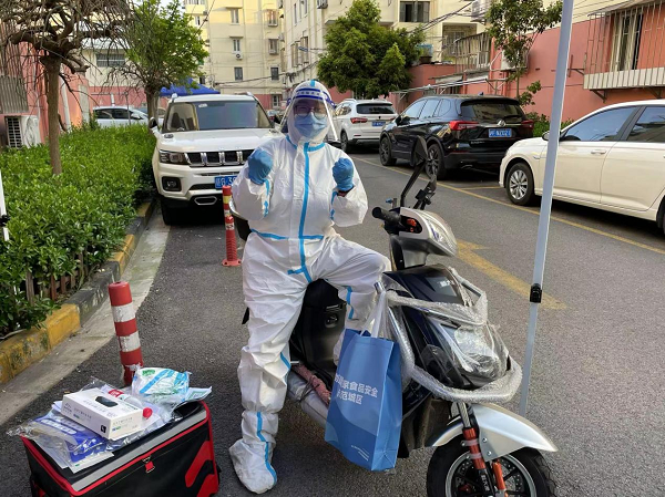 在4月7日举行的上海市疫情防控工作新闻发布会上,上海市商务委副主任刘敏指出目前上海市各大平台每日骑手上岗人数约1.1万人,正是这1万余人,串起了上海市民的生活物资需求,全力守护城市供给“生命线”。