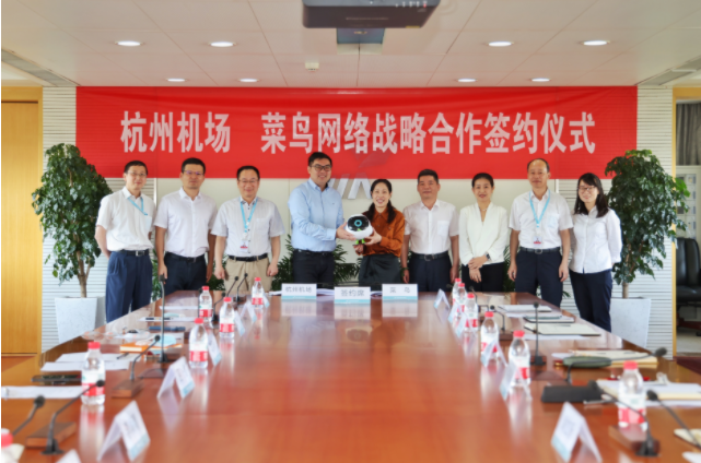 ldquo;杭州机场”)与菜鸟签署战略合作协议,浙江省机场集团副总经理葛建娟,杭州机场公司党委书记蒋福敏、总经理金胜昔,菜鸟国际出口物流事业部总经理刘歆杨、跨境包裹业务部总经理巫曼等参加签约仪式。