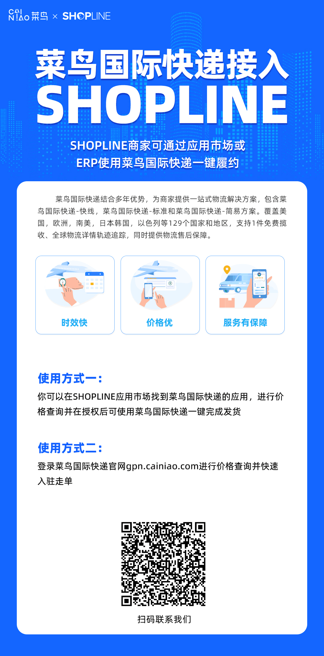 “跨境电商的持续发展,让中国制造和中国品牌能更有效触达海外消费者,也为有供应链基础的国内商家提供了更广阔的舞台。”菜鸟国际出口事业部副总经理李雅萍介绍,菜鸟国际将与SHOPLINE发挥各自优势,用数智物流服务为国货出海降本提速,保驾护航,菜鸟也将持续进行全球物流基础设施建设,优化国际物流“端到端”的履约服务。