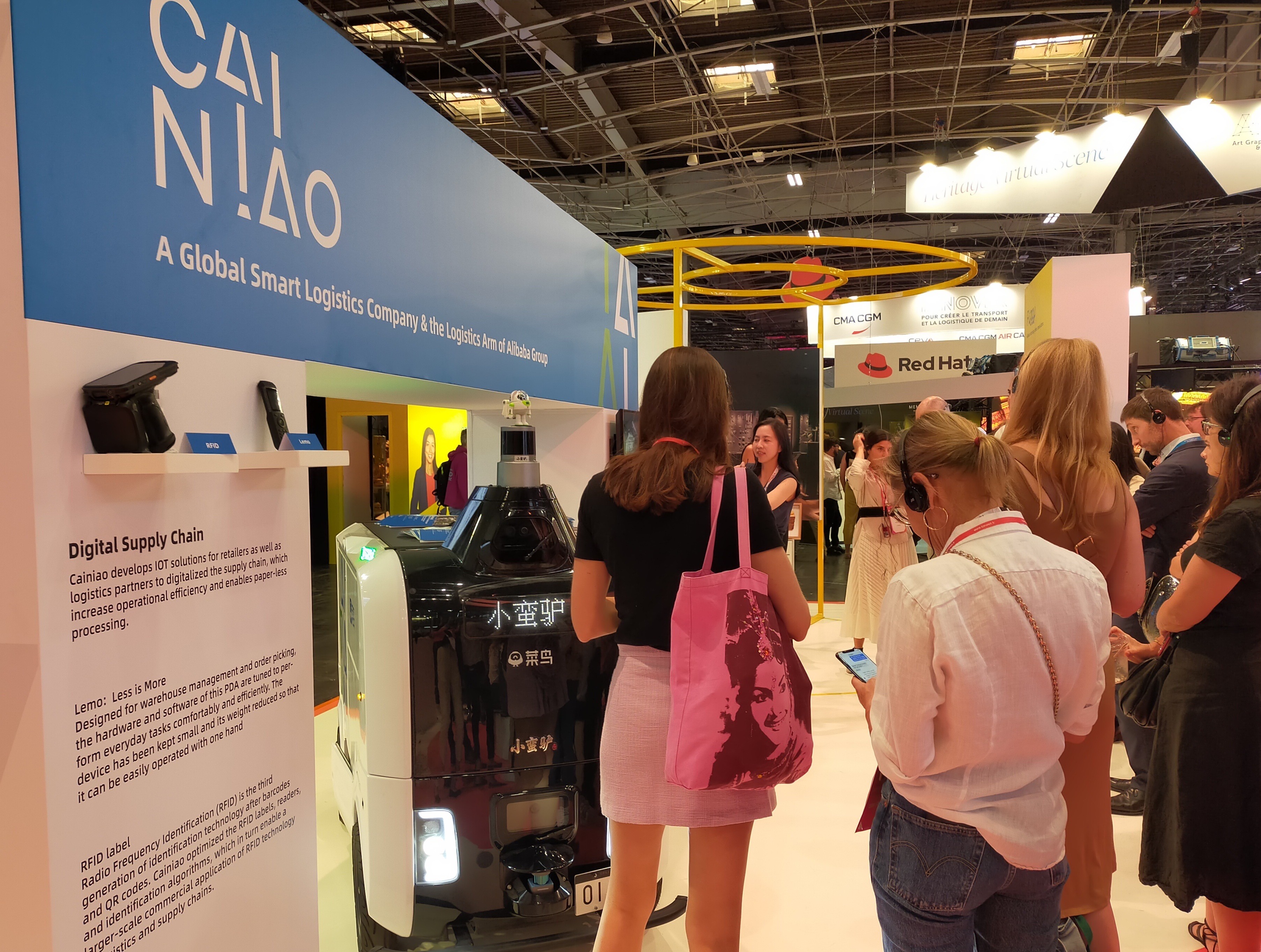 作为全球最具影响力的科技活动之一,Viva Tech吸引了来自全球149个国家和地区的2000多家展商参展。在展区Hall 1 G18,菜鸟国际快递与人工智能“黑科技”组团亮相。自研无人驾驶机器人小蛮驴、嵌入RFID标签(无线射频识别)的B2B循环箱、RFID扫描仪、仓内手持巴枪LEMO等展品首次与欧洲观众见面。
