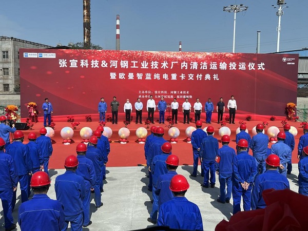 在“双碳”战略持续推动下,全国各地环保要求不断趋严。作为曾举办绿色“冬奥”的张家口,更是积极推动当地企业“零碳”发展路线。张宣科技乃是驰名全国的钢材生产企业,积极响应环保生产号召,坚持践行新能源发展路线,不仅在生产中完成创新技改,实现了“煤改氢”的“零碳”冶炼生产模式。在保障厂区物料运输、物资调配中,张宣科技更是一次性引入45台欧曼智蓝新能源重卡,组建新能源运输车队,用于厂区物料短倒、公&铁物资互转,全方面保障全厂“零碳”运输,实现运力绿色升级。
