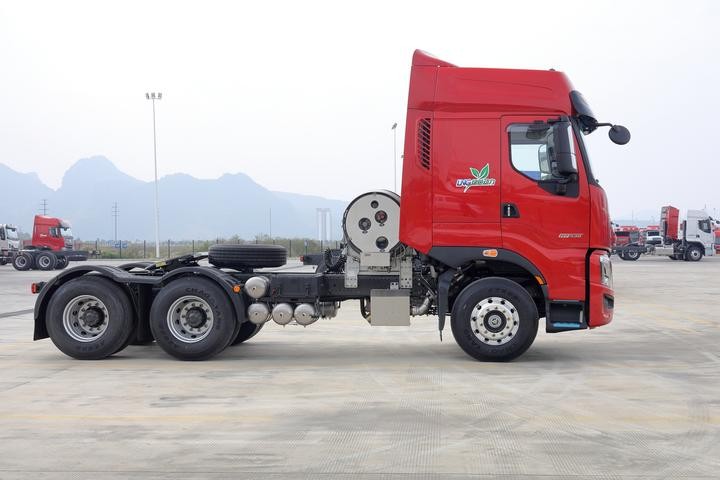 大排量的燃气发动机整体动力输出更强劲,同时配合上高传动效率的法士特12挡变速箱以及小速比后桥,使得乘龙H7 LNG牵引车在高速上的平均时速可以更快,山区路况的爬坡效率更高,强劲的动力链可以很好满足干线物流用户的使用需求。