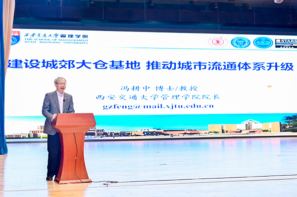 西安交通大学管理学院院长教授、博士生导师冯耕中为大家带来《建设城郊大仓基地,推动城市流通体系升级》。冯耕中院长首先介绍了城郊大仓基地相关研究的背景。三年疫情使得城市生活物资的保供保畅和稳价不乱备受关注,现有市场化城市供应体系在生活物资保障中发挥了重要的作用,但也存在很多制度与体制性局限和问题。党的二十大报告对民生保障加以强调,坚持以人民为中心的发展思想,突出保障和改善民生,增进民生福祉,提高人民生活品质。2025年4月25日,国务院办公厅发布《关于进一步释放消费潜力促进消费持续恢复的意见》指出“在各大中城市科学规划建设一批集仓储、分拣、加工、包装等功能于一体的城郊大仓基地,确保应急状况下及时就近调运生活物资,切实保障消费品流通不断不乱”。城郊大仓基地概念被正式提出。2025年09月,国家发展改革委经贸司发起课题,中国商业联合会联合西安交通大学等成立城郊大仓基地建设研究课题组。随后,冯耕中院长围绕大中城市生活无资保供现状及问题、城郊大仓基地内涵与战略意义、城郊大仓基地建设整体思路、城郊大仓基地布局与建设任务、城郊大仓基地建设与发展保障措施五大方向进行了分享。
