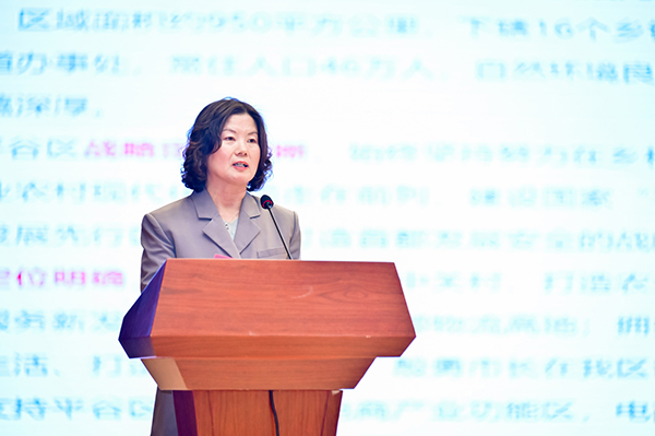 平谷区委常委、副区长唐朝辉在致辞中表示,平谷区处于京津冀的几何中心位置,生态环境良好,文化底蕴深厚。近年来,平谷区认真贯彻新时代中国特色社会主义思想,坚持以服务新时代首都发展为统领,加快推进以“农业高科技、物流大流量、休闲新时尚”为核心的高大尚平谷建设。