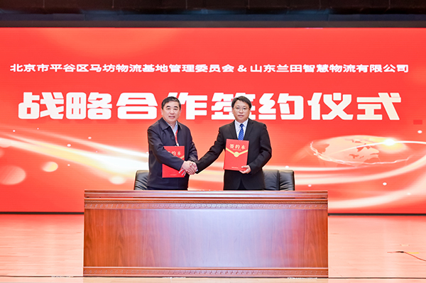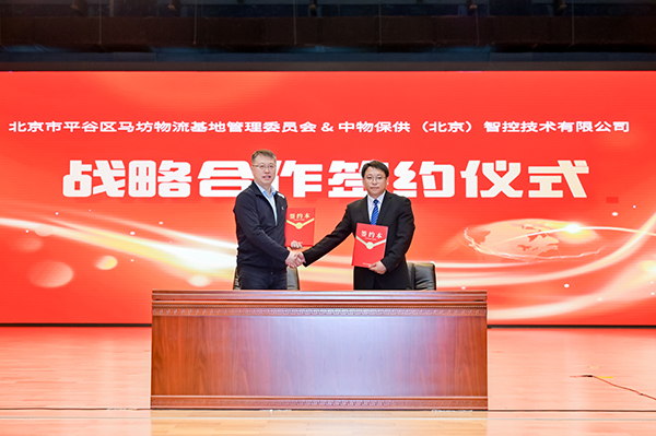 大会期间还举行了战略签约仪式,北京市平谷区马坊物流基地管理委员会分别与中国商业联合会商贸物流与供应链分会、中物保供(北京)智控技术有限公司、上海瑞章物联网技术有限公司、山东兰田智慧物流有限公司进行战略签约,通过多方紧密合作,必将充分发挥各自优势,实现资源共享、优势互补,共同推动平谷区城郊大仓基地高质量建设。